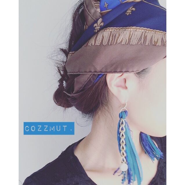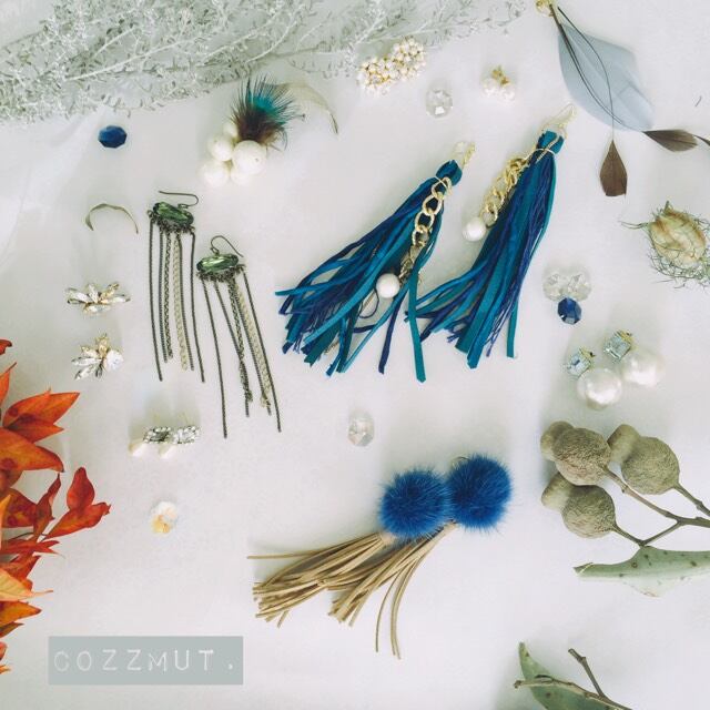 こちらは、様々なブルーと様々な素材を合わせて作ったタッセルに、